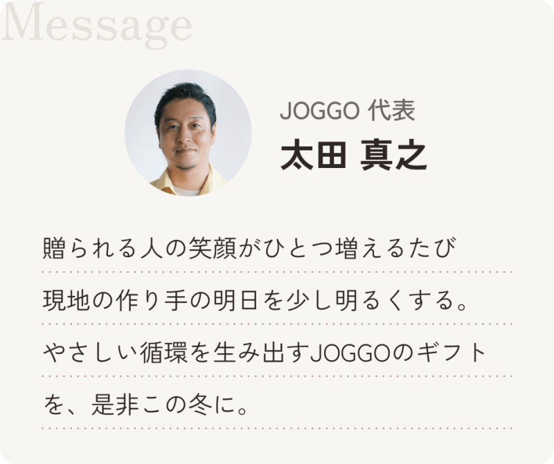 贈る相手はもちろん、困っている遠くの誰かにとっても嬉しいそんな背景が重なると、ギフトをあげる瞬間がより一層特別なものになる気がします。